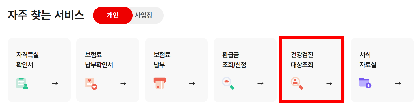 - ‘건강검진 대상 조회’ 메뉴에서 실시간으로 대상 여부 확인 가능
